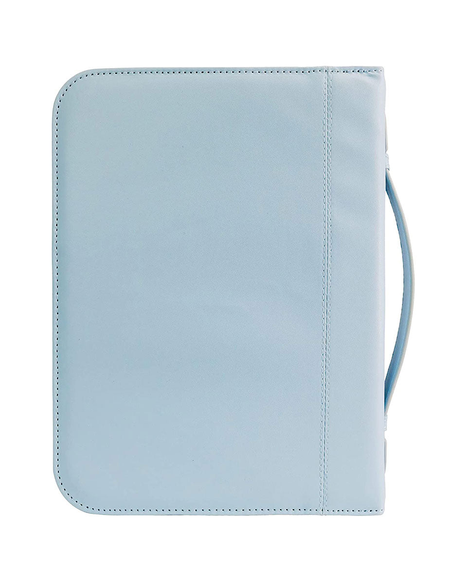 Baby Blue Floral PU Leather Durable Zipper Bible Bag Carrying Case