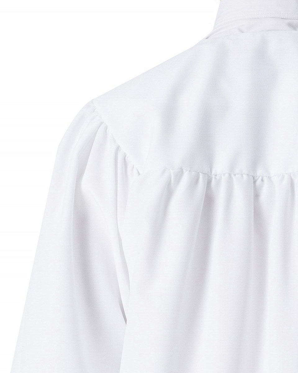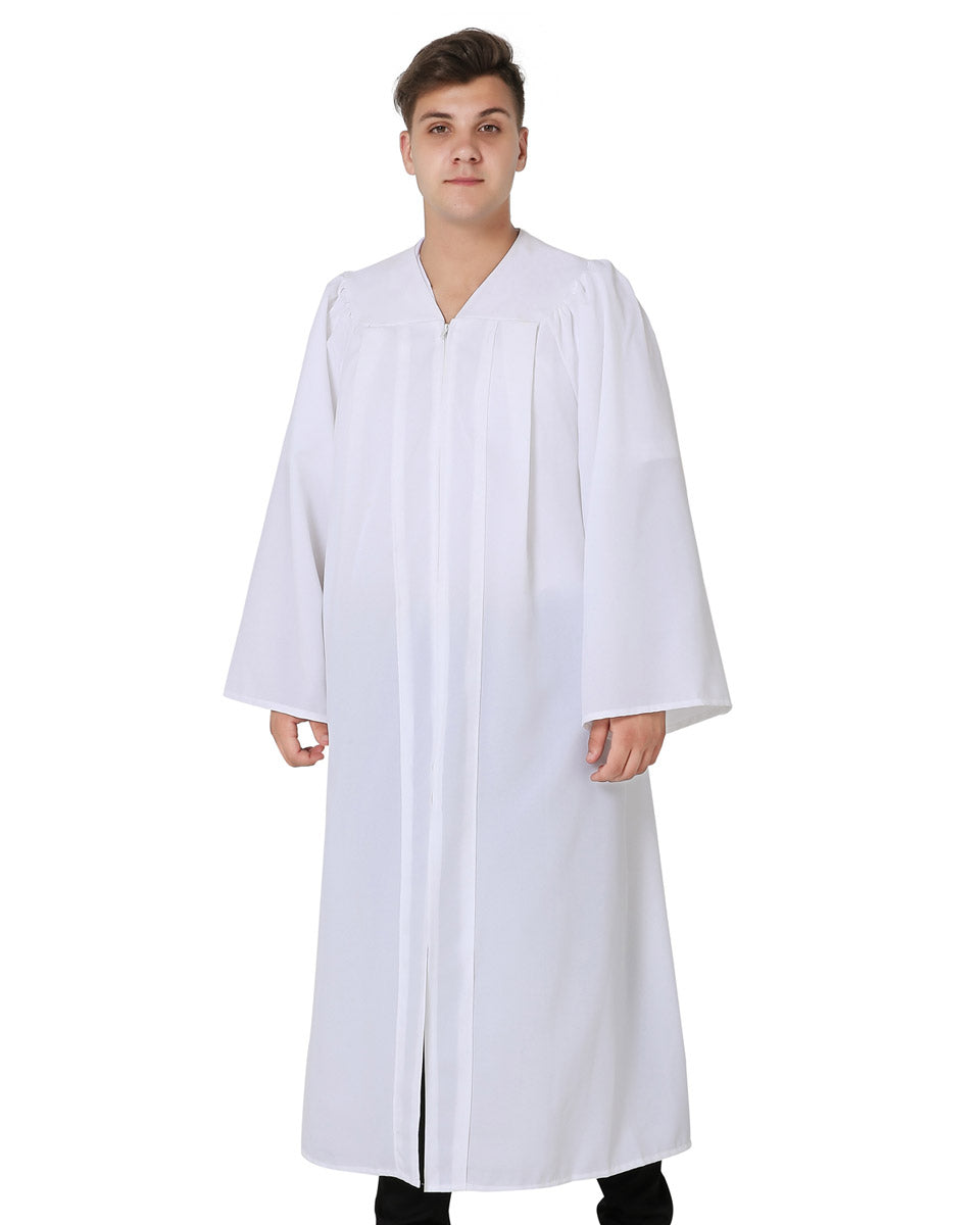 Our Budget Baptismal Robe is made of crease-resistant 100% polyester, comfortable touching and durable fabric which can extend its service life. The robe features traditional full open sleeves, reinforced shoulders and yoke, keeping the shape of the gown. Along with a rust-proof hidden zipper closure with a hook eye clasp, our handmade robe will give you a comfortable appearance in the baptism.
