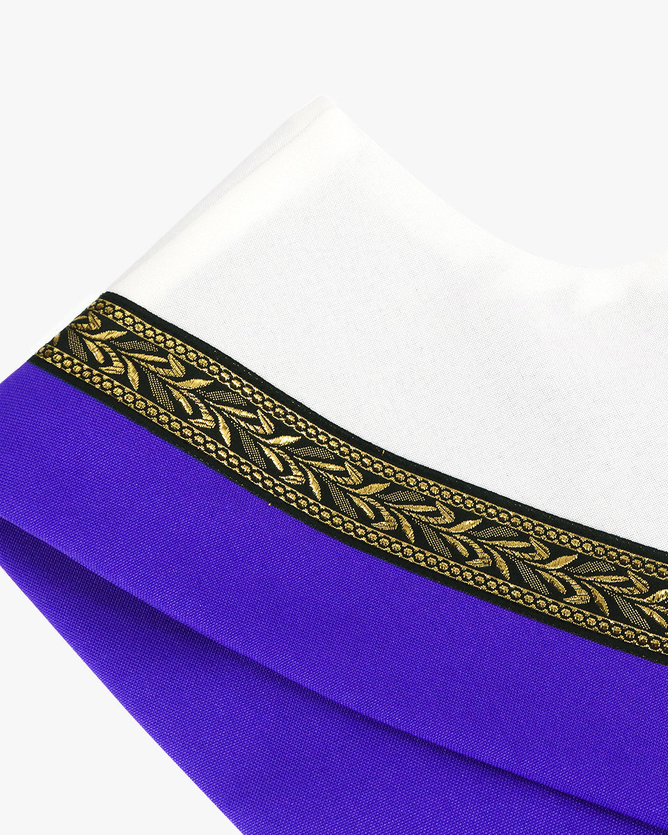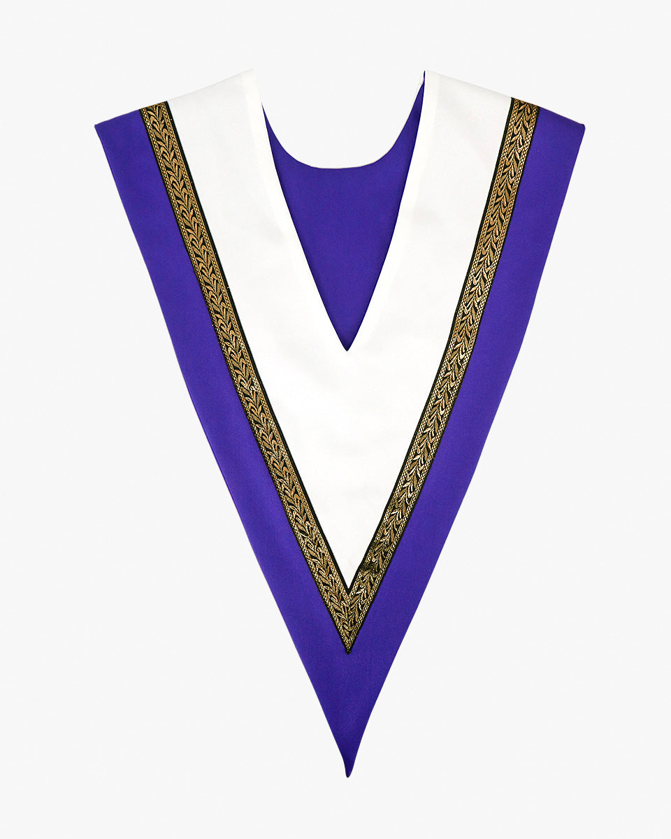 This choir stole is made of plain weave fabric. There is a V shape on the front and back. With a contrasting strip in front and back on one side. It is not only with an affordable price, but also features high quality and fine workmanship. In addition, it is available in a variety of colors, and logos and lettering can be added on the front. If you are interested in our this stole, please contact to let us know your requests, we will need 4-6 weeks to custom the stoles for you.