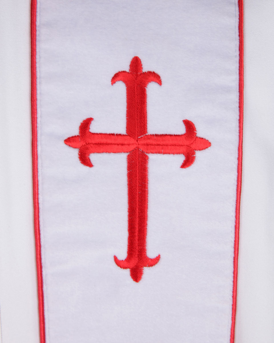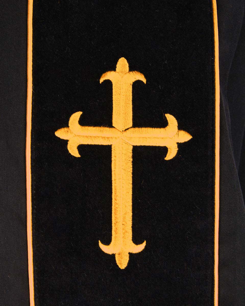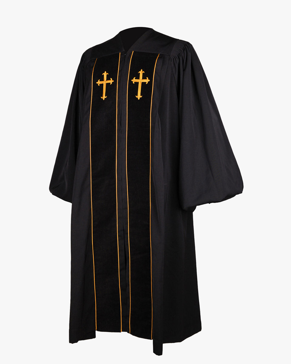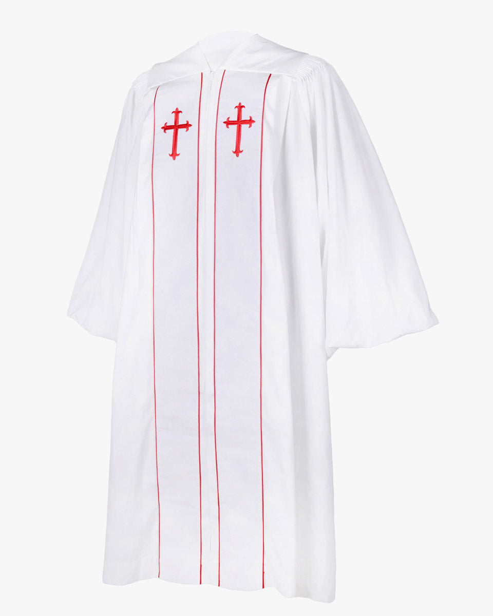 Cleric clergy robe is made of highest quality polyester fabric and finest workmanship. It features in 3 colors, royal blue, white and black. Colorful gown has same color front panel with piping and embroidery cross. It is free-wrinkle, light weight and durable. These kinds of Cleric Clergy Robes provide you with top notch quality and comfort at a very reasonable rate. Expert craftsmanship takes time so purchase yours ahead of time. And you will save more money with more orders.
