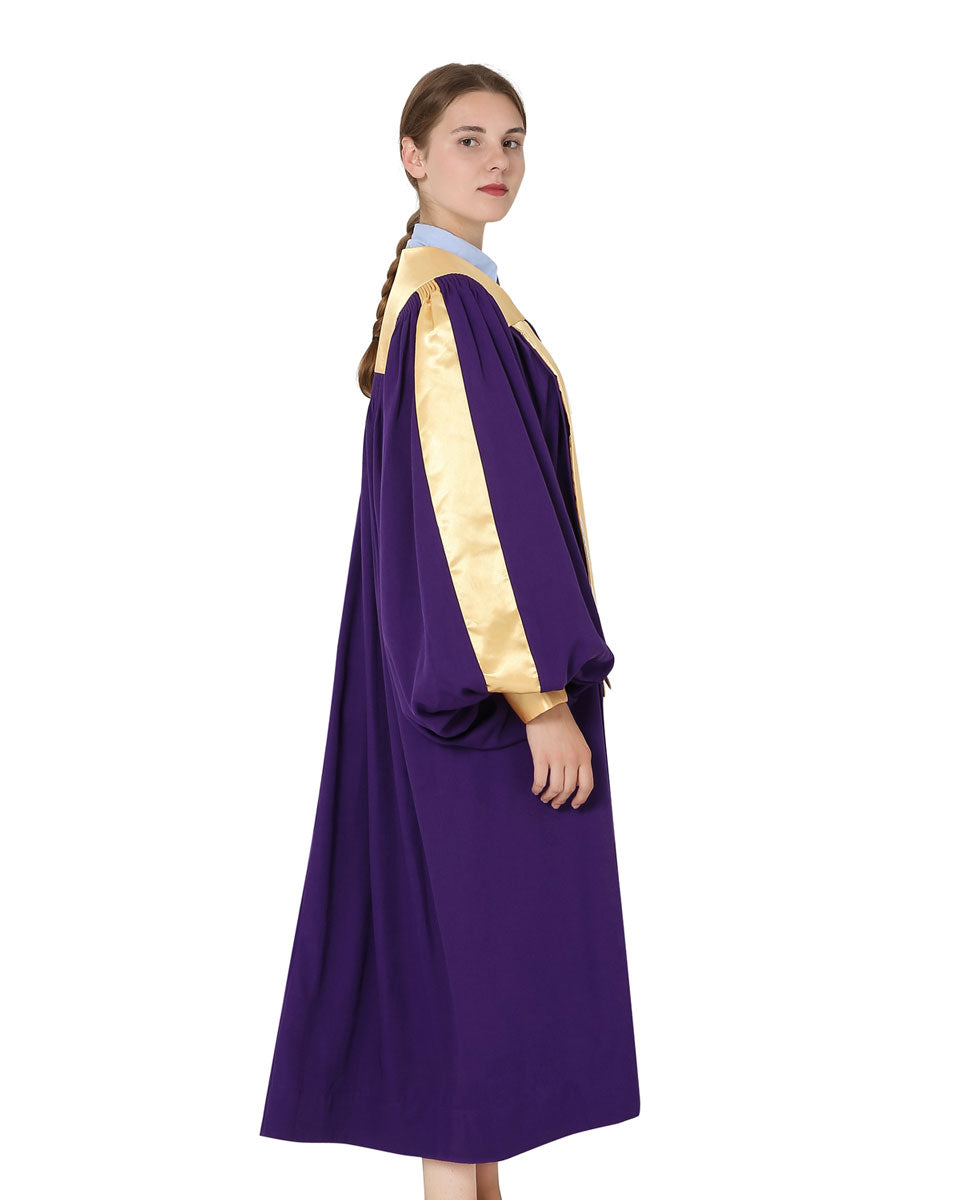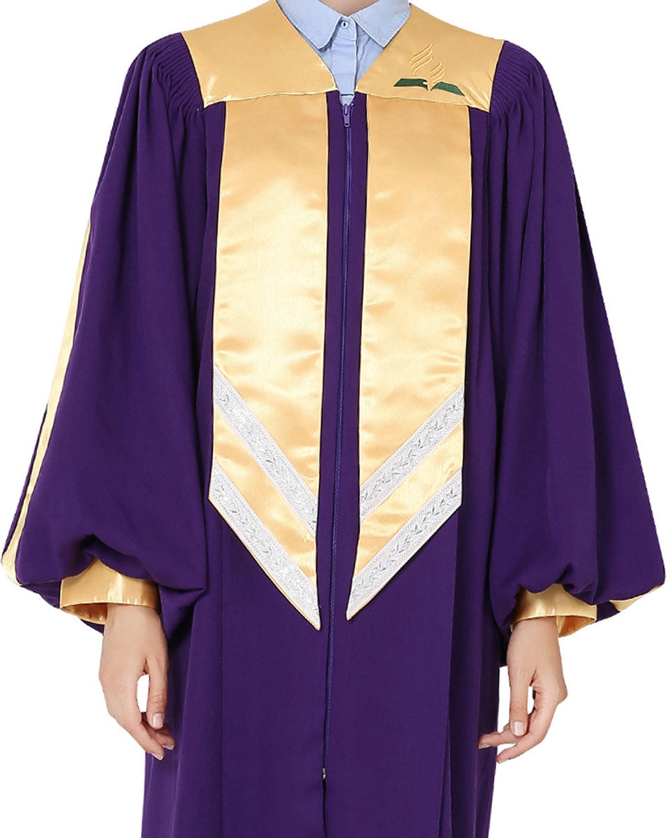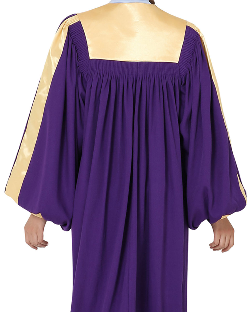 Our Custom Crescendo Choir Robe with Cuff Sleeves is with high yoke and contrasting sleeve strip and cuff match the color of yoke and the stoles. Contrasting front hanging stoles with two rows of ribbon highlights on each stole. This robe is not only in the popular style with affordable price, but also with high quality and fine workmanship, which is made of 100% washable polyester fabric which is comfortable and easy care. The robes in maroon/gold are in stock. Once you order, our team can send it out in 1-3 biz days. For other colors, kindly contact us for custom orders. Have a Unified Look with Crescendo Choir Robes with Cuff Sleeves Christian church people use choir robes as a way to identify and unify their singers. The attire helps to give a special look to the team and removes distractions from the member street dress. It helps to level the playing field and avoid judgment from a single member in the group. Choir members raise their voices to God in praise and they have the power to heal when they perform their best. Being distracted by street dress or less than quality robes can hinder their performance and, in turn, hinder the congregation from feeling God presence. If you need new choir robes, then you have come to the right place!