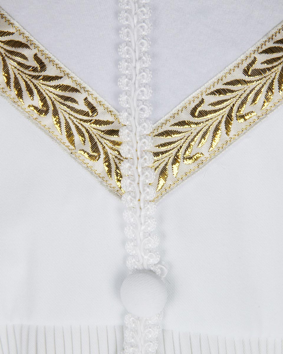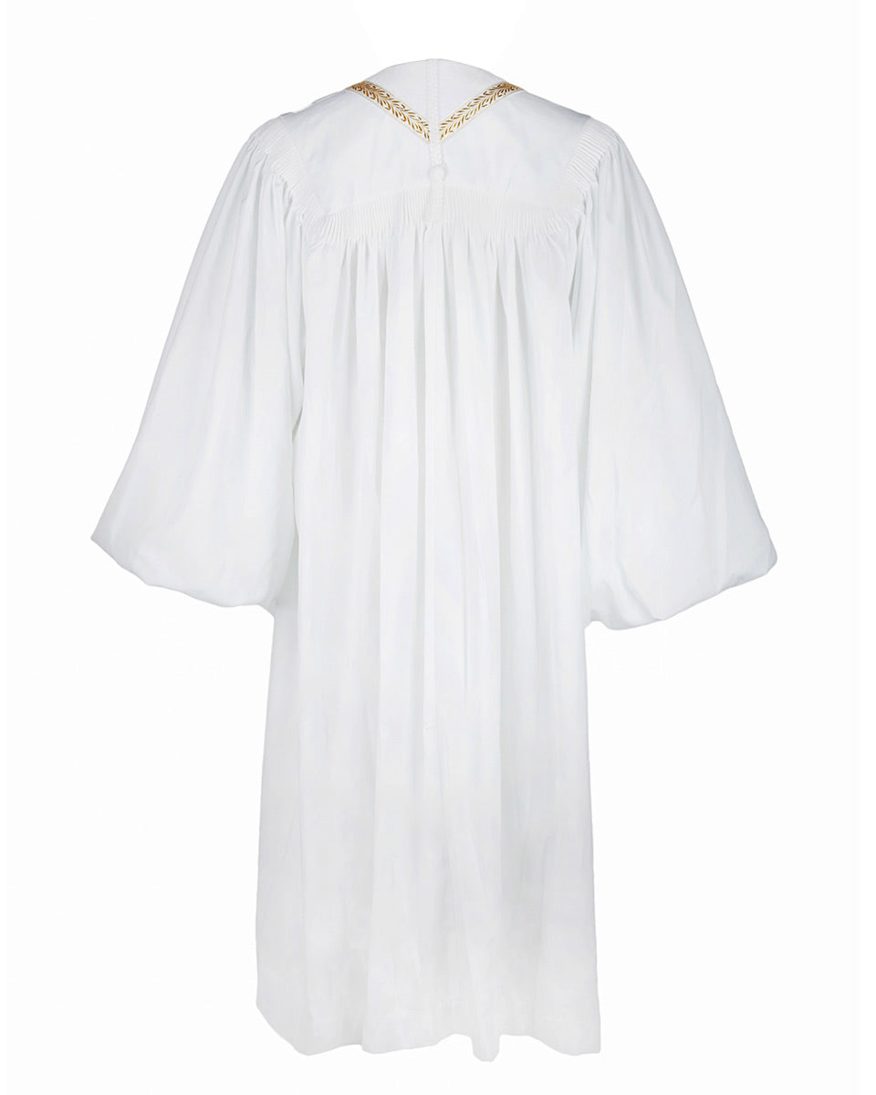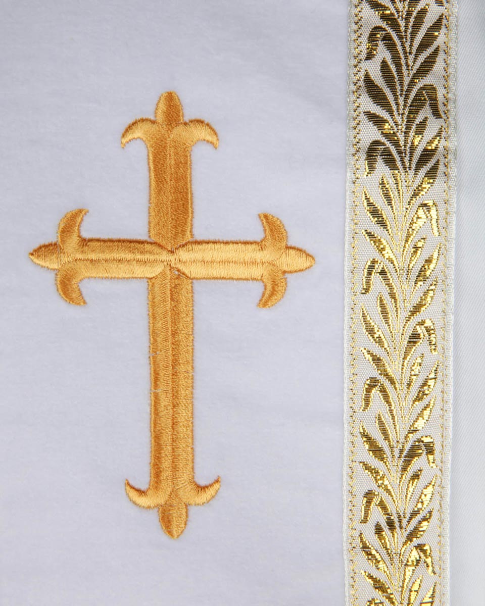 Our RT Welsley Clergy Robe is made of superior matte polyester, which is one of the most popular products on our website. It features cuff sleeves and black velvet panels with gold embroidery crosses on front. Furthermore, the ear of wheat alike decorative bars are stitched surround the velvet panels. The reinforced fluting across the shoulders and back can strengthen the construction of the robe. There are 6 sizes for all figures and 4 color combinations for you to choose.
