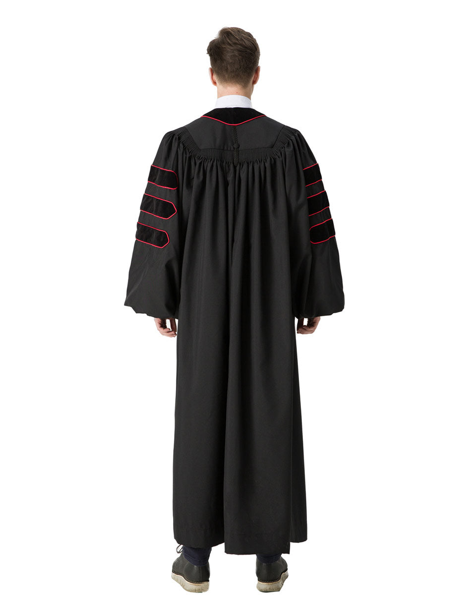 Our Doctor of Divinity Clergy Robes with finest quality and exquisite workmanship is one of your best options for religious activities. First-rate and wrinkle-free matte fabric will keep you comfortable all day. The fluting along the shoulders and back yoke are sewn evenly by the skilled makers, which strengthen the shape of the robe. Furthermore, two black velvet panels with red piping and red embroidery crosses are on front. We have 6 sizes for various kinds of figures. We will ship them out right away after you place an order on our website.