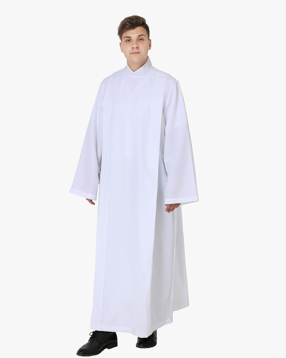For those looking for beautiful cassocks and albs, you have definitely come to a very popular and affordable place! Our white Front Wrap Clergy Alb is the perfect combination of elegancy and style due to its 100% matte polyester fabric, open front cowl collar, and sturdy velcro enclosure that is found at the shoulder and the lower helm; with this alb, every wearer is guaranteed to be the center of the attention, providing beautiful memories that will last for a lifetime. This alb is thick enough for durability and to prevent it from being see-through; likewise, it is wrinkle-free and machine-washable, providing easiness in its care and also allowing every wearer to look their best.