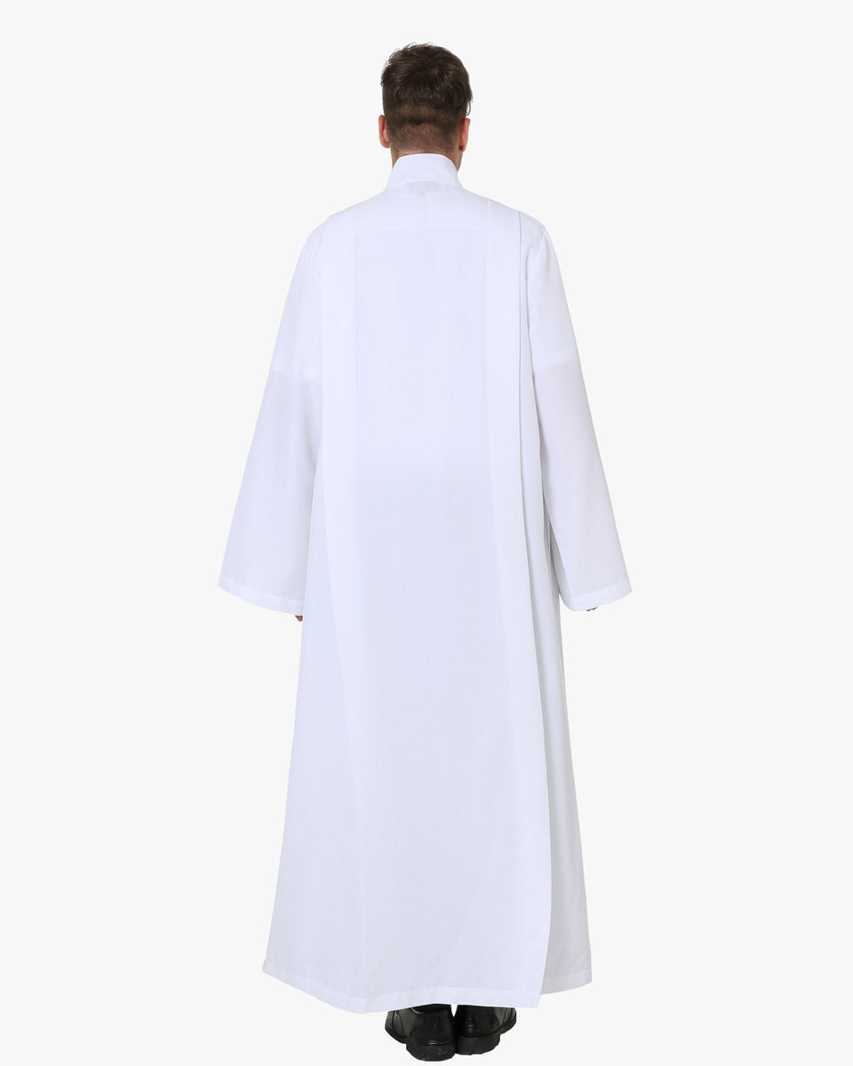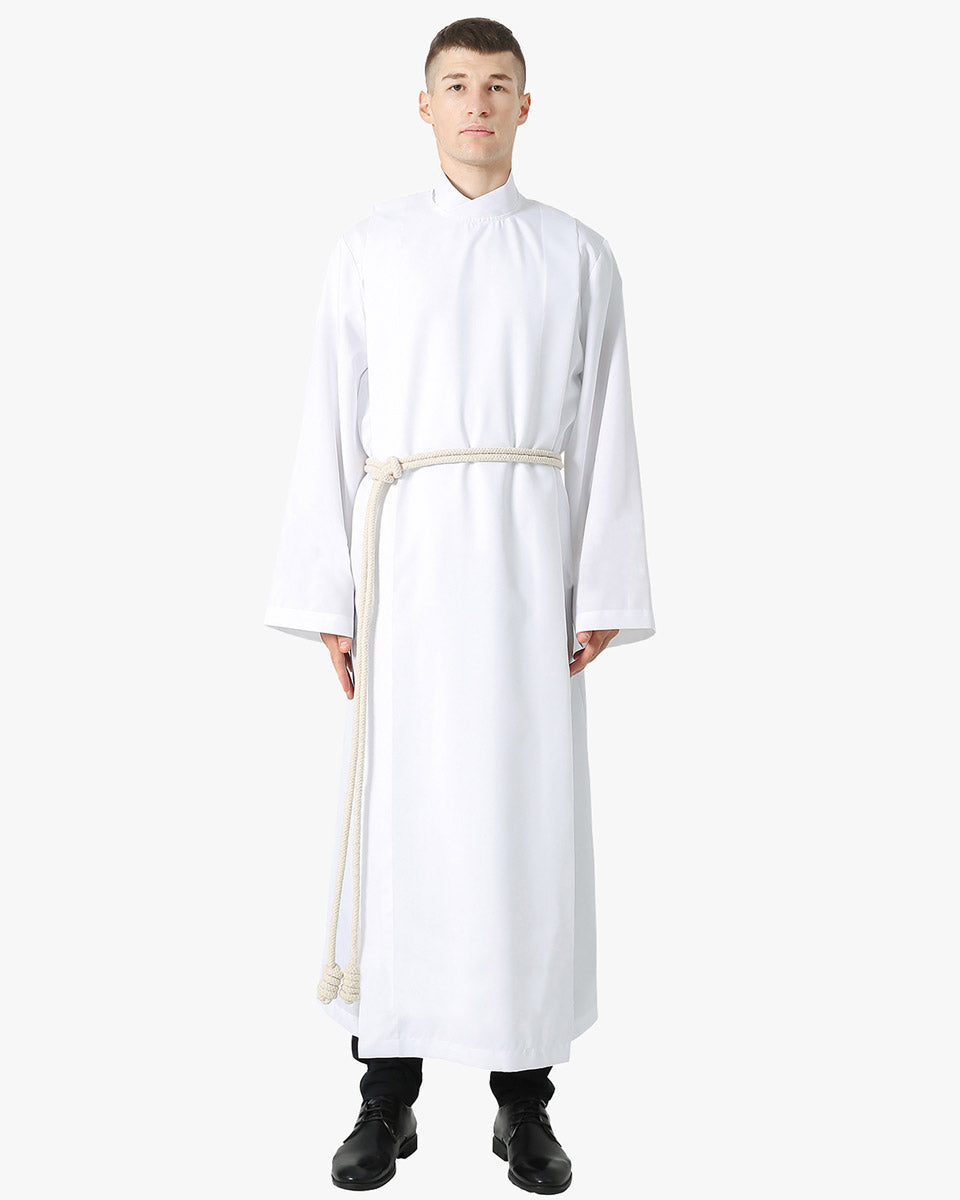 Front Wrap White Clergy Cassock Alb with Cotton Cincture