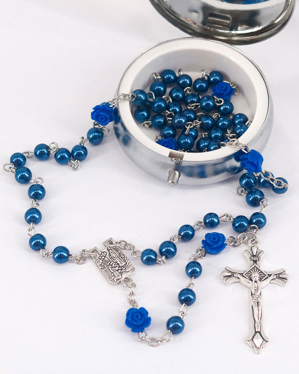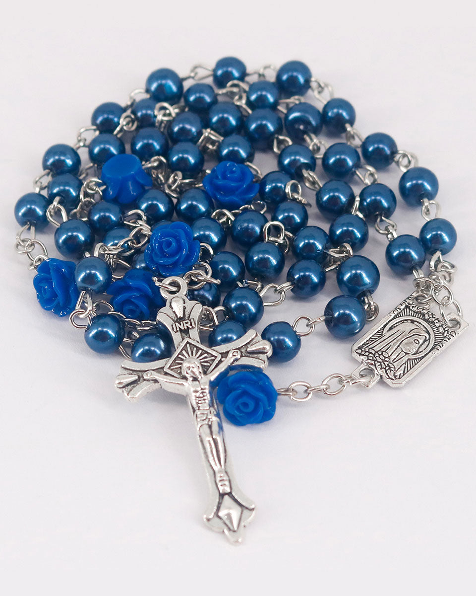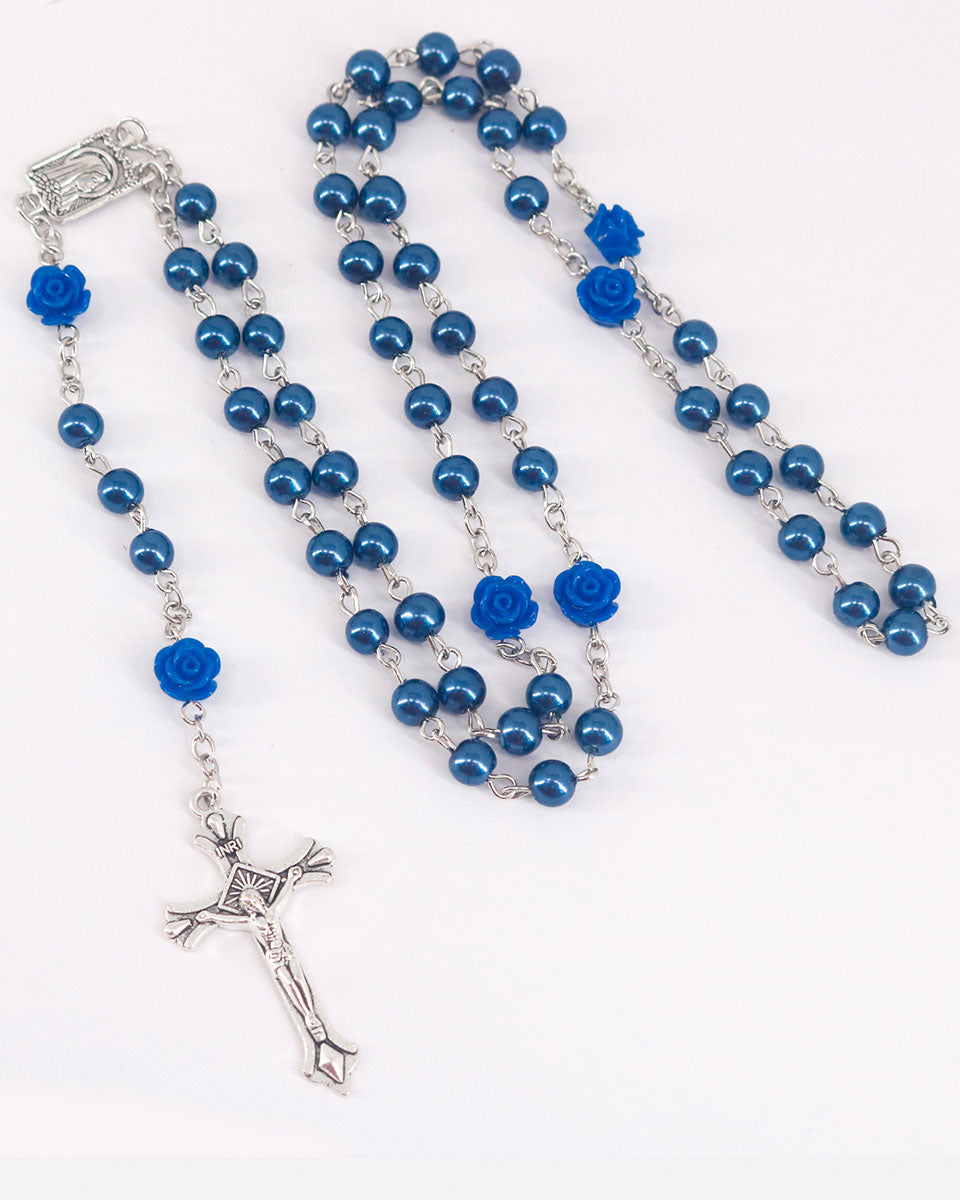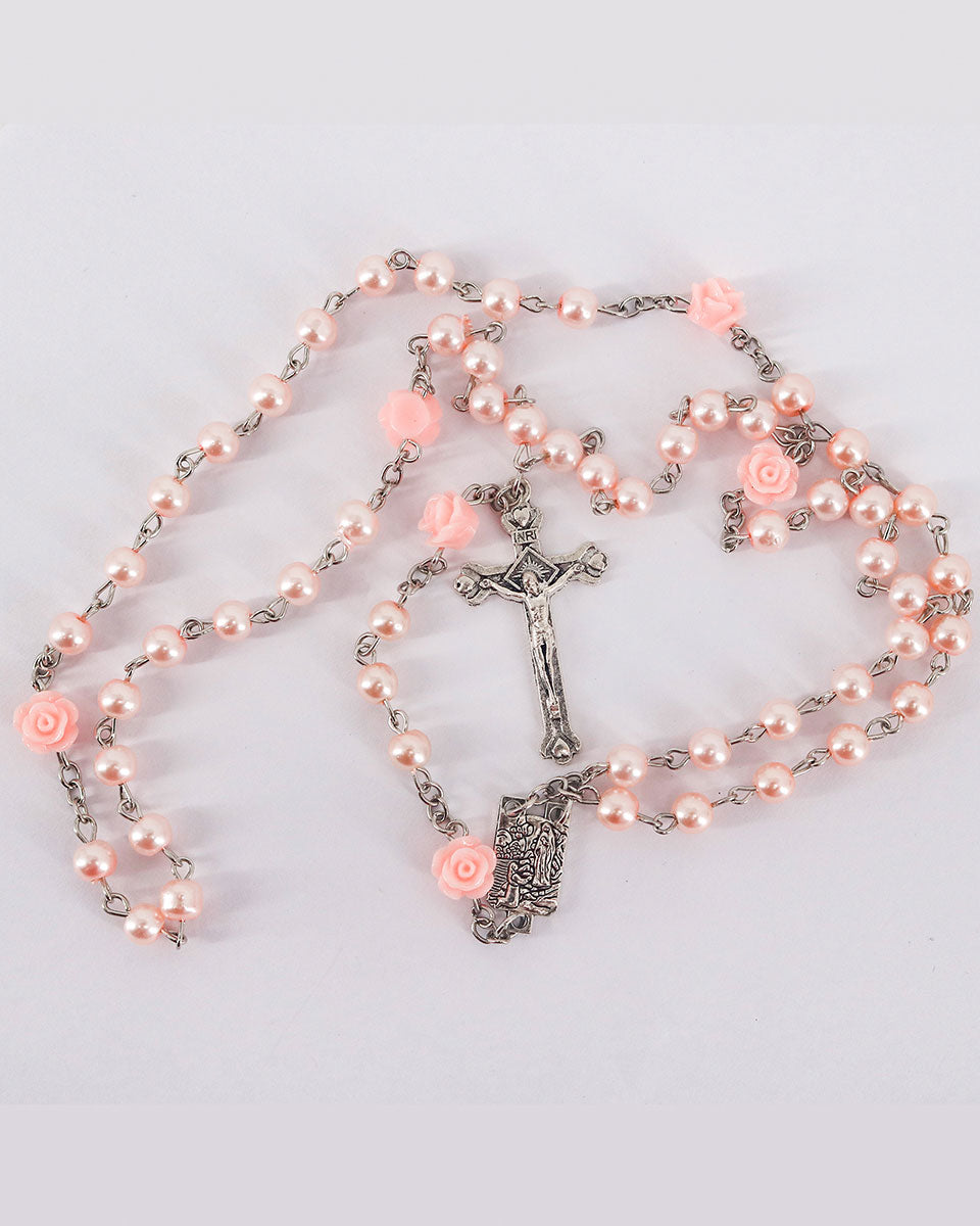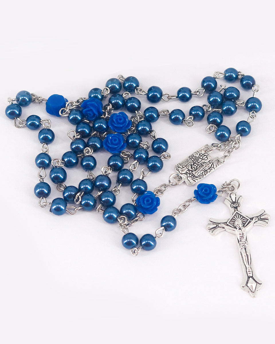 • 6 mm Glass Pearl Beads Catholic Our Lady of Guadalupe Rosary Necklace has many as for your choice, like Blue and pink
