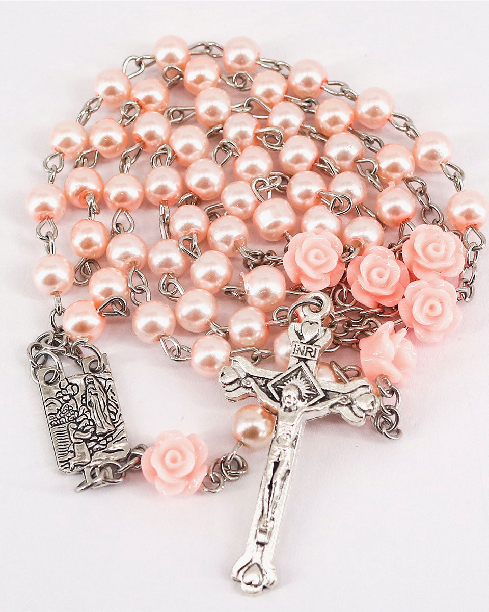 • The glass pearl beads rosary Hail Mary beads size is 6 mm, and our father beads are 8 mm with caps
