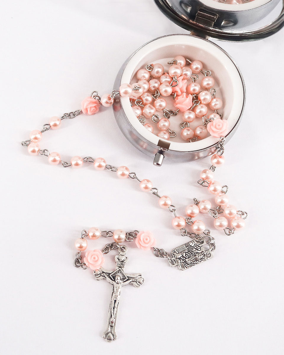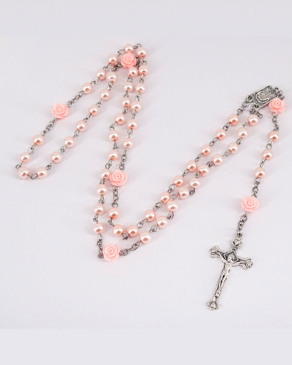Glass Pearl Beads Catholic Rosary Necklace with Virgin Mary and Crucifix Rosary – 2 Colors Available