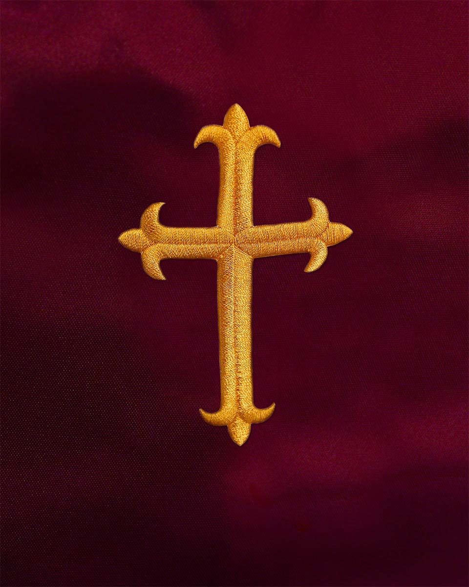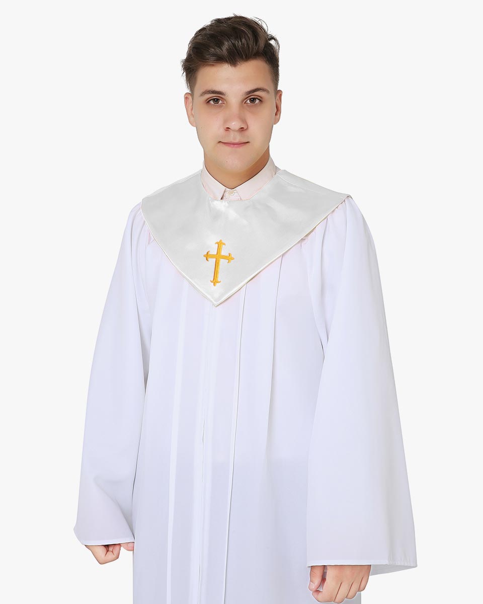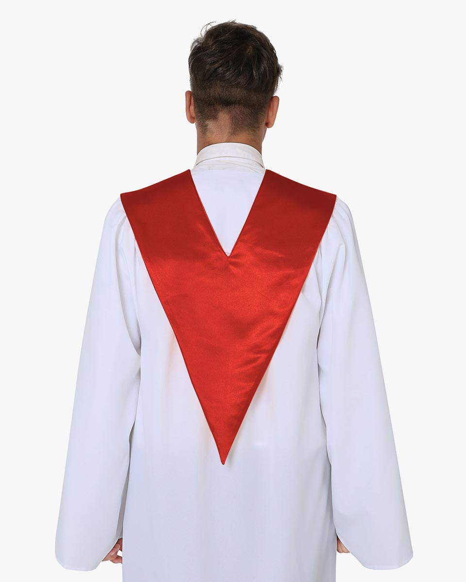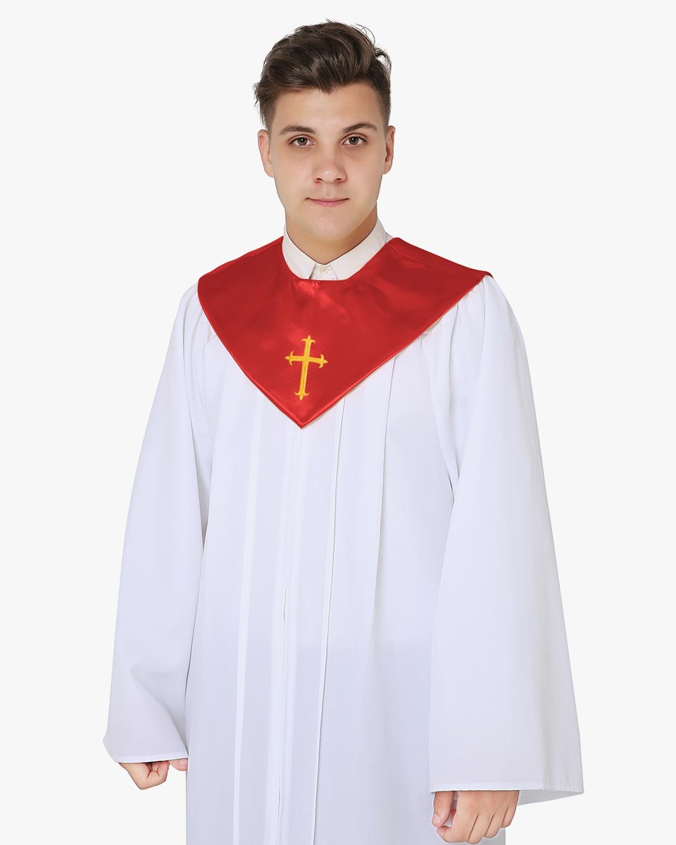 The One Color V-neck Stole with Cross is becoming increasingly popular for choirs and events. It is made of top-end, lightweight shiny satin fabric which makes the stole glossy and contour to the shape of your body better. The pure color let the choristers be more elegant compare to the other stoles. The 3.9" long cross with contrasting colors in front is the highlight of the stole. Our stole is reusable because the premium fabric is durable and easy to clean. 5 colors are avalible to match your colorful choir robes.