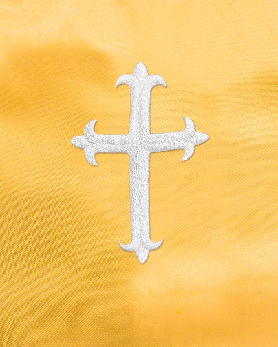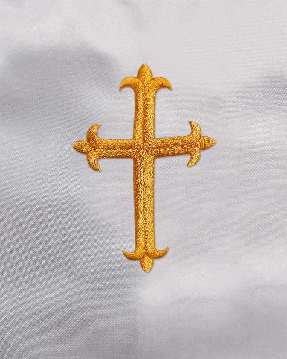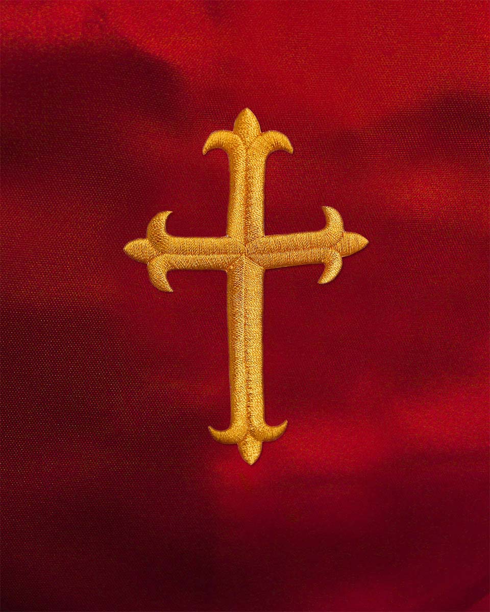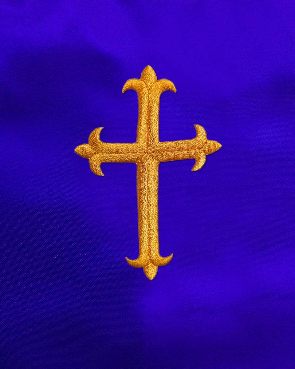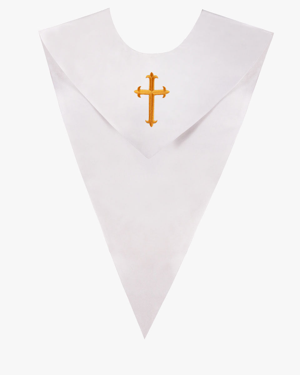 The One Color V-neck Stole with Cross is becoming increasingly popular for choirs and events. It is made of top-end, lightweight shiny satin fabric which makes the stole glossy and contour to the shape of your body better. The pure color let the choristers be more elegant compare to the other stoles. The 3.9" long cross with contrasting colors in front is the highlight of the stole. Our stole is reusable because the premium fabric is durable and easy to clean. 5 colors are avalible to match your colorful choir robes.