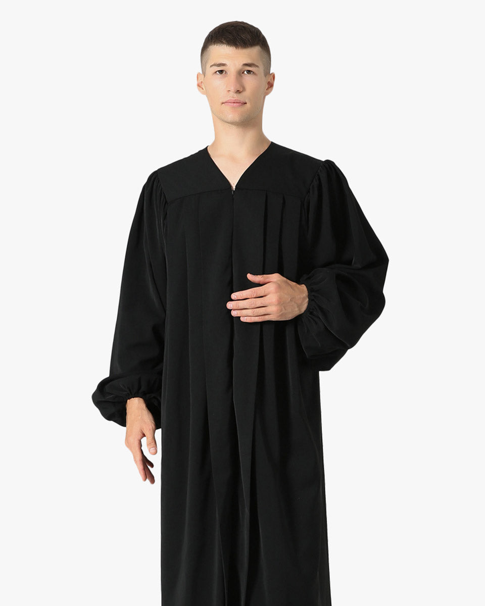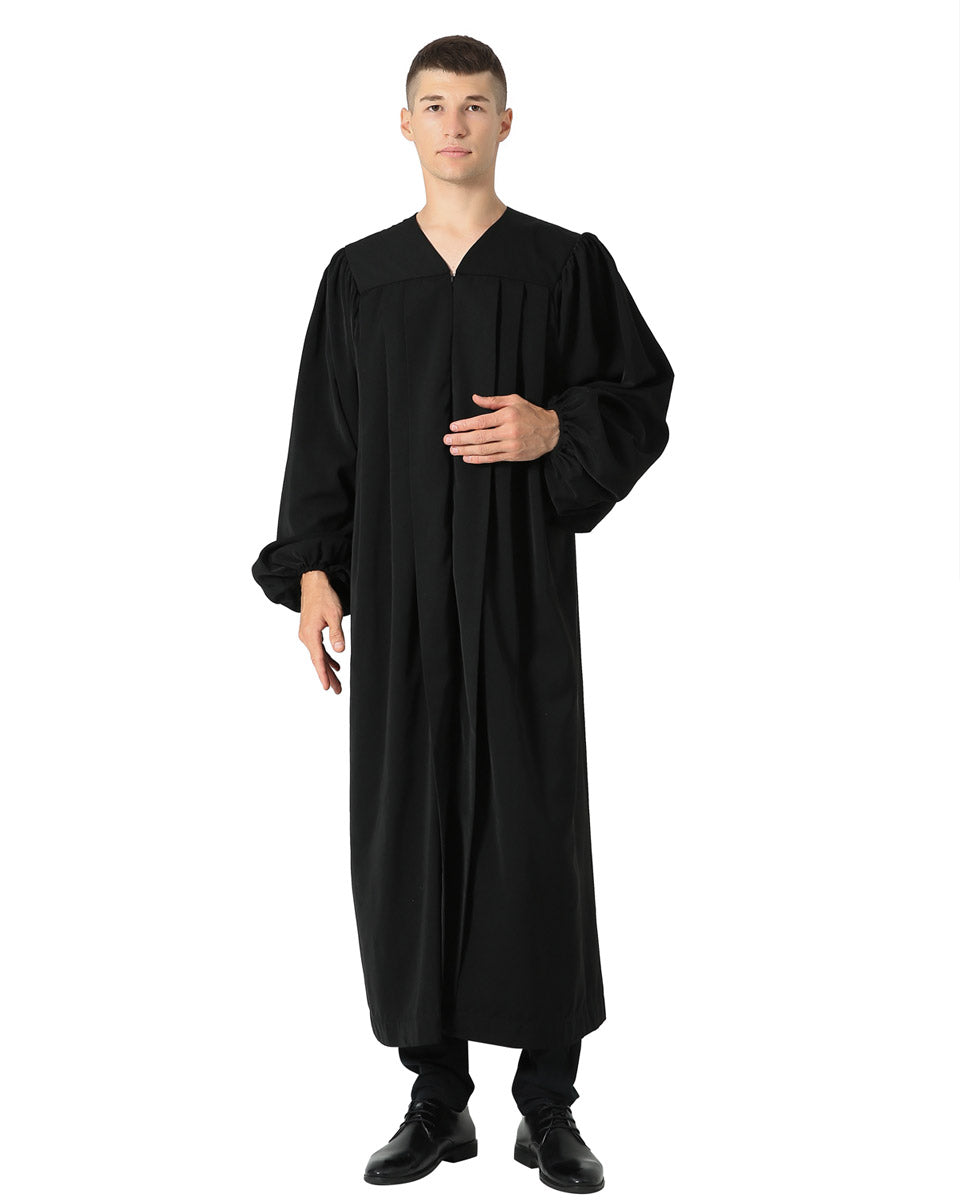 Our Black Baptismal Robes are made of highest quality matte polyester and exquisite workmanship. This crease-resistant and durable fabric is easy to care, meanwhile it can extend its service life. These baptismal robes feature a rust-proof invisible zipper closure with a hook eye clasp and even pleats around the yoke to strengthen firmness. In addition, the hem at the bottom of the gown ensures the optimum draping effect. The baptismal robes provide you with high-quality fabric and excellent superb craftsmanship at reasonable prices.