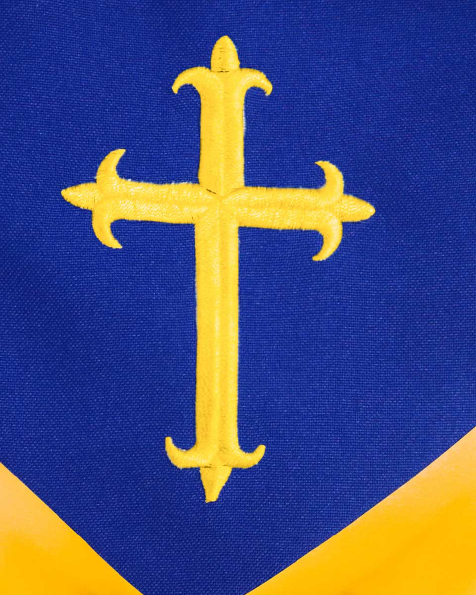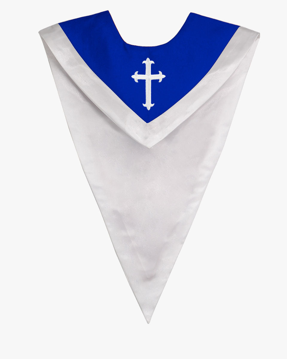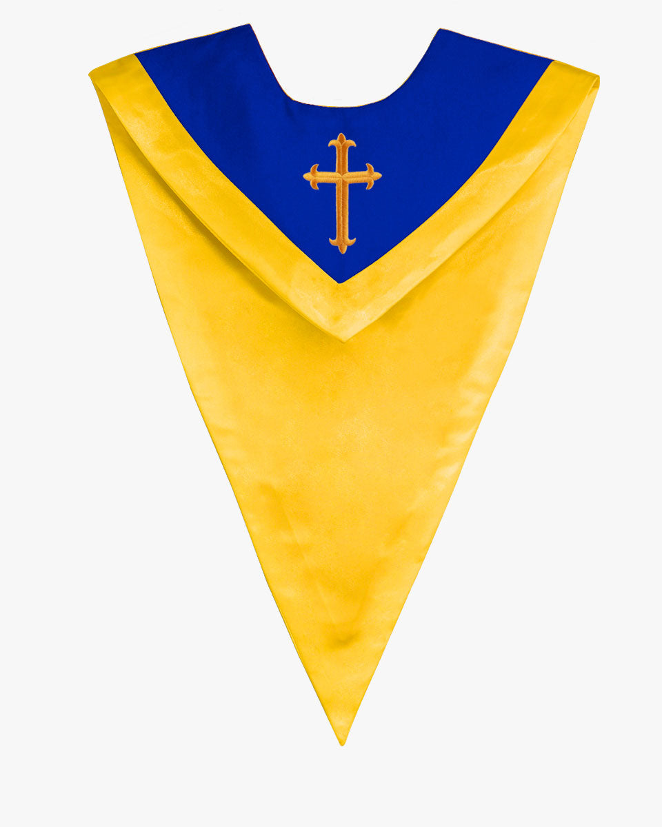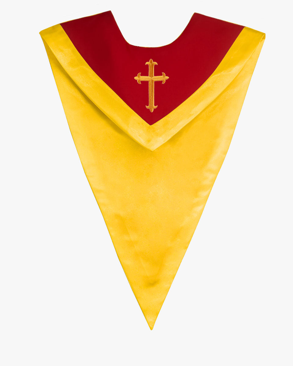 Our Reversible Choir Stoles with a Border and a Cross are some of our most elegant stoles that we have available on our website, allowing all choirs to absolutely shine in their choir performances, leaving a wonderful impression for all and also helping to include the spirit in every moment. There are 6 vibrant color combinations available, allowing choir members to match the stoles with their choir robes; likewise, the front side of the stole is made of a lightweight, plain, and strong-woven fabric with a matte finish, and the reverse side and the front trim is made of a bright and shiny satin. The marvelously embroidered cross that is in the middle of the stole is 3.9" long. The popular stole decorated with the divine cross is our website’s best seller.