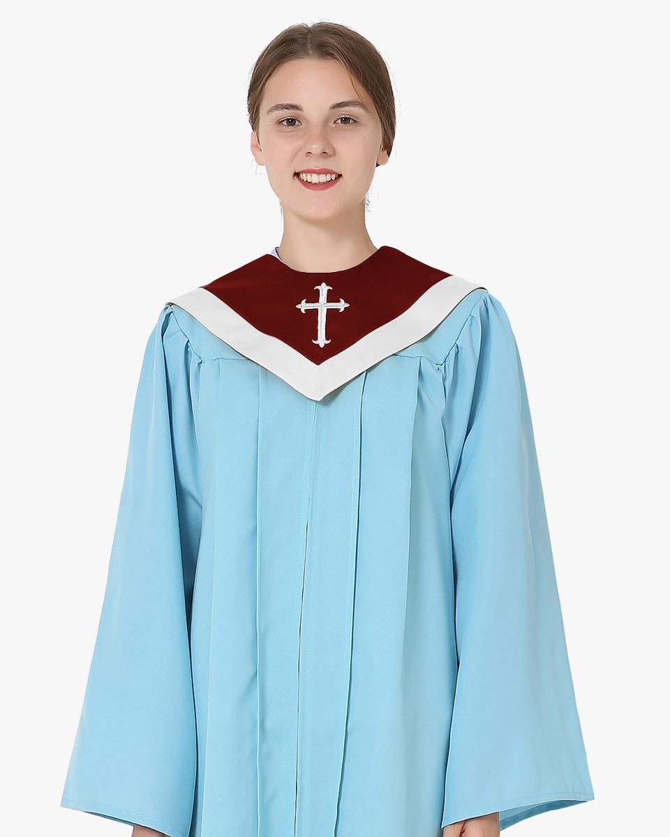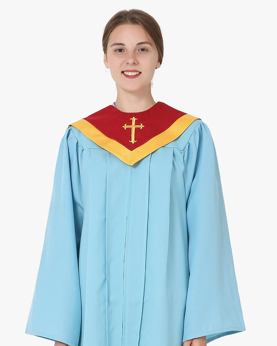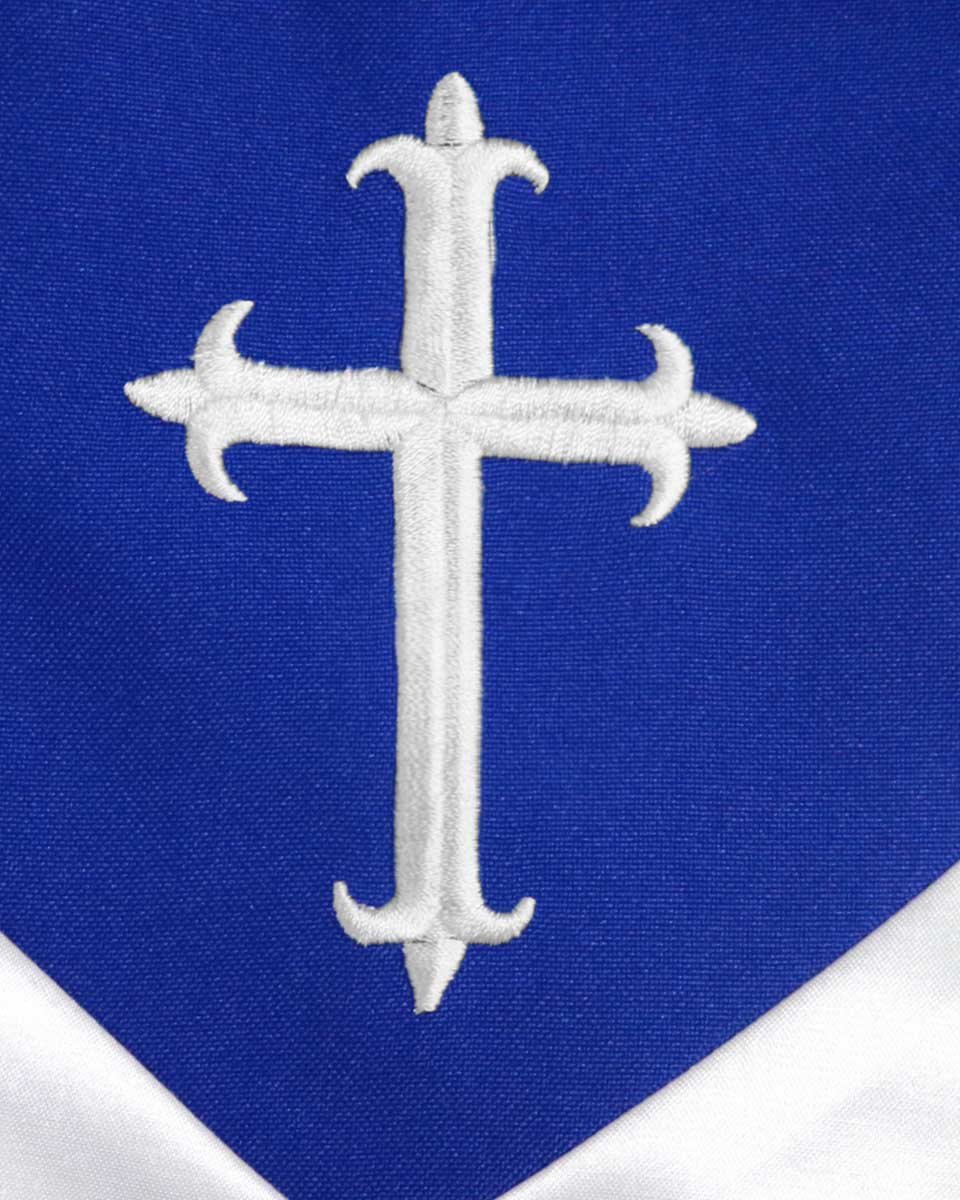 Our Reversible Choir Stoles with a Border and a Cross are some of our most elegant stoles that we have available on our website, allowing all choirs to absolutely shine in their choir performances, leaving a wonderful impression for all and also helping to include the spirit in every moment. There are 6 vibrant color combinations available, allowing choir members to match the stoles with their choir robes; likewise, the front side of the stole is made of a lightweight, plain, and strong-woven fabric with a matte finish, and the reverse side and the front trim is made of a bright and shiny satin. The marvelously embroidered cross that is in the middle of the stole is 3.9" long. The popular stole decorated with the divine cross is our website’s best seller.