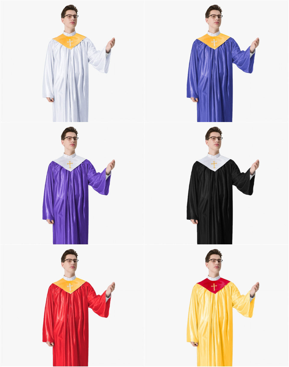 Our Senior Economy Choir Robe with Matching Stole Set is the most cost-effective one you can find in the market for choirs. We have the strength in the most favourable price for you to make first-grade robes and stoles. Price is affordable and the item quality is guaranteed. 12 robe colors and 10 stole options generste multiple combinations. Comfortable and suitable robes and stoles help to add a glorious appearance to your brilliant choir members.