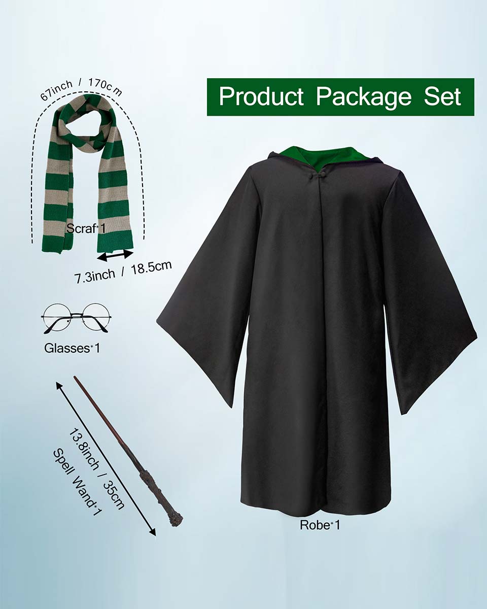 • Package include: 1*Magic Robe, 1*Magic Wand, 1*Scarf, 1*Glasses
