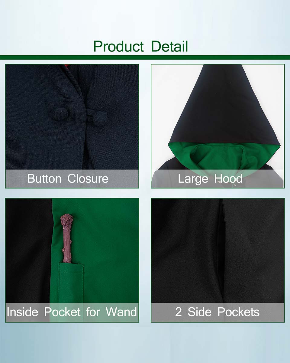 Made of high-quality uniform cloth polyester material, has a total of 3 pockets, which are 2* side pockets and 1* pocket for wand. It is machine washable and easy to care for. Welcome to your magical world and enjoy your fun party. Package include: 1*Magic Robe, 1*Magic Wand, 1*Scarf, 1*Glasses. Please refer to our size chart and the model's wearing effect, you can according to the bust and robe length to select the size. It was designed with the style of the magic colleges, simple and stylish. Perfect for any witch, sorceress, Gothic, vampire, or Halloween/Christmas-themed party or adult fancy dress costume, used for both female and male. Suitable for Christmas, Halloween, Carnival, Easter, St.Patrick's Day, National Day, Football Fans, Carnival, Birthday, Masquerade Cosplay, and various seasonal festivals and parties. It is a perfect gift for other relatives and friends.